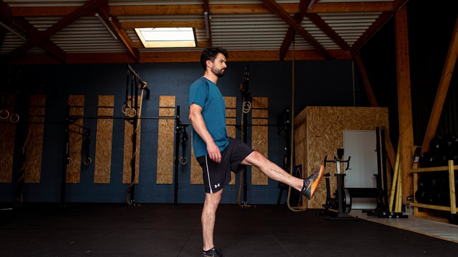 - Levez légèrement le pied gauche sans que le genou ne se plie.