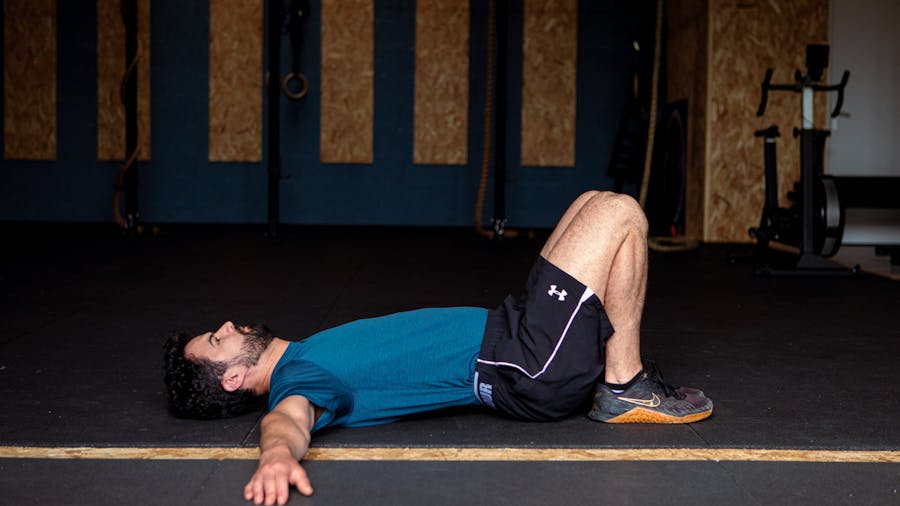 - Poussez votre bassin vers le sol comme pour écraser quelque chose qui se trouverait sous votre dos et maintenez.