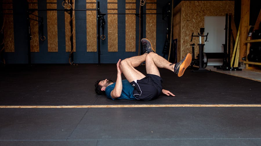 Cet étirement est très similaire à "l'étirement glutéaux" classique où la torsion de la jambe se fait grâce à la montée du genou. Le fait d'utiliser les mains pour effectuer la torsion permet de trouver un angle différent et donc d'étirer autrement les glutéaux.