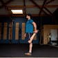 - Levez le genoux gauche vers la poitrine, attrapez le avec une de vos mains.