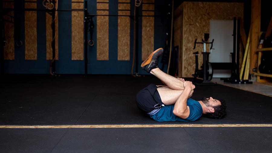 - Ramenez au maximum vos genoux vers votre poitrine et maintenez la position.