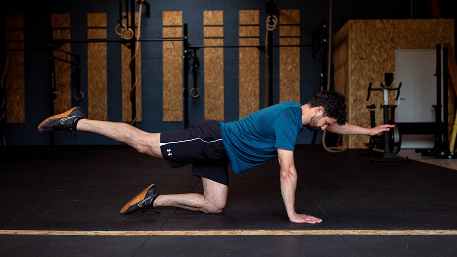 Cet exercice renforce le bas du dos ainsi que la sangle abdominale. Il travail également la coordination et l'équilibre.