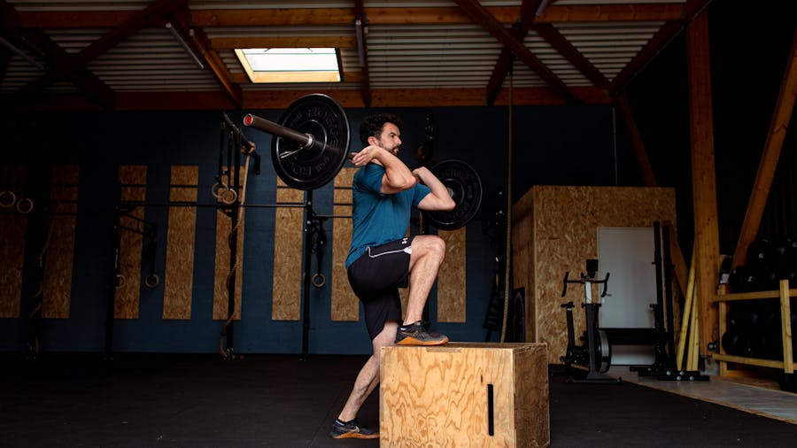 - Verrouillez cette posture et positionnez vous devant votre marche (chaise, banc, box jump) l'idéal étant que votre "obstacle" vous arrive à hauteur de genoux.